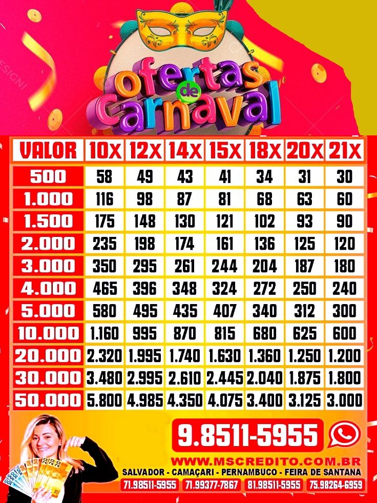 Informações adicionais. Prazo de pagamento: O período mínimo é de 01 e o máximo de 21 meses.